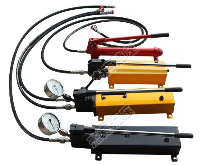 手動油泵站系列 | 手動油泵體積小,重量輕,結構緊湊,操作簡單,超高壓,小排量,配有低壓泵以提高工作效率。可直接對壓力容器進行壓力試驗,配備油缸及機具可以進行 起重、頂升、彎曲、校直、拉伸、沖孔、鉚接、拆裝等作業(yè)。 | 型號 | 最高壓力Mpa | 排量ml/次 | 手搖力 N | 郵箱容量 L | 重量 KG | 外形尺寸 (mm) | 備注 | 高壓 | 低壓 | SYB-1 | 63 | 2.3 | 12.5 | 500 | 1 | 7 | 550×130×170 | 雙泵單油路 | SYB-2 | 63 | 2.3 | 12.5 | 500 | 3 | 10 | 570×190×170 | 雙泵單油路 | 2SYB-1 | 63 | 2.3 | 12.5 | 450 | 4 | 15 | 610×230×160 | 雙泵雙油路 | 2SYB-2 | 63 | 2.3 | 12.5 | 450 | 8 | 18 | 610×350×180 | 帶手動換向閥 | 2SYB-3 | 63 | 2.3 | 12.5 | 450 | 10 | 22 | 700×420×180 | 超超高壓手動油泵 | 型號 | 最高壓力Mpa | 排量ml/次 | 手搖力 N | 郵箱容量 L | 重量 KG | 外形尺寸(mm) | 備注 | CYB-1 | 160 | 1.6 | 500 | 4.5 | 6 | 800×220×190 | 雙泵雙油路 帶手動換向閥 | CYB-2 | 250 | 1 | 500 | 4 | 11 | 800×220×191 | 單泵單油路 |